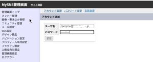 初期ユーザ(sns@example.com)とパスワードを変更する